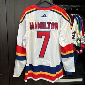 Pay tribute to one of the best players on the ice with this Dougie Hamilton New Jersey Devils Reverse Retro 2.0 Authentic Player Jersey from adidas. This authentic jersey boasts enhanced cresting and embroidered adidas appliques, mirroring the authentic on-ice look. Featuring adidas Clima® technology and ventilated mesh panel inserts, this jersey delivers superior breathability so you stay cool and comfortable whether you're cheering from the stands or watching from home.