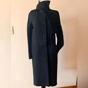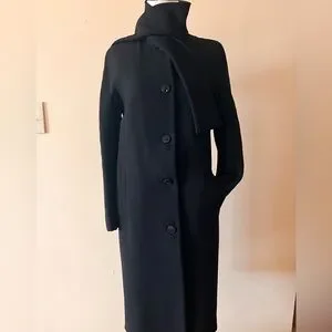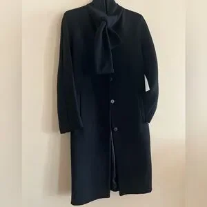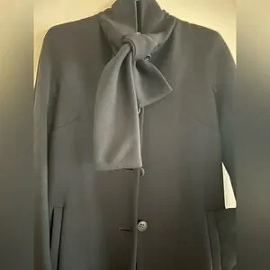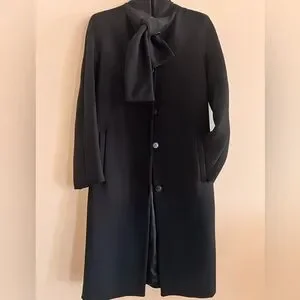 Vintage Moschino Cheap and Chic Black Coat . Made in Italy size: I 40 , D 36, F 36 , GB 8 , USA 6 . The collar you can do how would you like : scarf or bow. 100 % Lana vergine , lining 100% rayon. Measurements approximately: length 39,5” , underarm 18” . Pre owned.