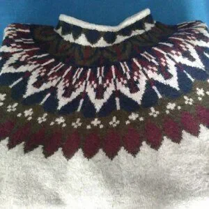 Great with an overcoat or vest. Hem and cuffs detail, Rich looking pattern. Perfect for the Fall. Acrylic/Poly/Spandex