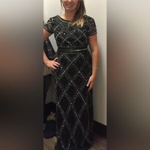 NWT Adrianna Papell Art Deco Diamond Beaded Evening Gown with Cap Sleeves