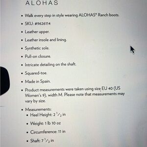 Alohas unisex western cowboy boots size 42, women’s 11, men’s size 9