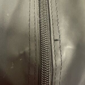 Zippper closure. 1 inside pocket. Adjustable nylon strap.