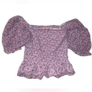 Leyden floral smocked Top Peplum hem New