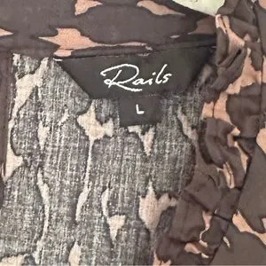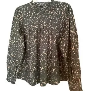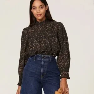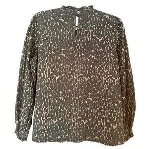 Rails Ariana Leopard Animal Print Ruffle Collar Blouse Size Large