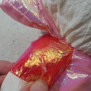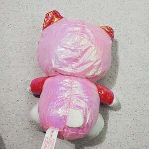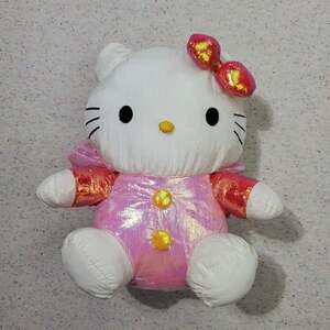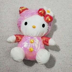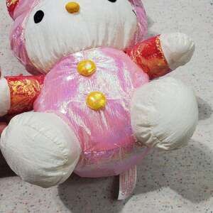 Cute vintage hello kitty Sanrio plush, material is like swishy windbreaker type. Shiny also! Arm has 2 tears in external fabric. About 8-10 inches tall. Hood can be pit over head or worn down. Rare style!