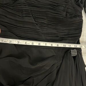 BB/Collections Classy Vintage at its Best! Beautiful details throughout this dress. Sheer long sleeves. Keyhole Back. Button sash on waist. Ruching on the Bodice. Chic Clasp with rhinestones holding a draped sash. This dress has it all. Even the elegant shoulder pads always making your waist appear even smaller. 55% Acrylic & 45% Nylon. Size 8. See photos for details and approximate measurements.