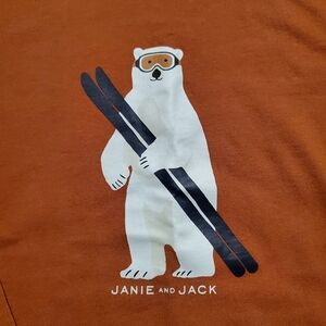 Janie & Jack Long Sleeve tee Size 6. burnt orange with a polar bear holding skis and wearing goggles. new with tags