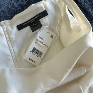 NWT French Connection Whisper Faux Mini Dress, brand new with tags, never worn, super cute effortless white mini dress with wrap skirt and zip back closure. In color- 12- summer white