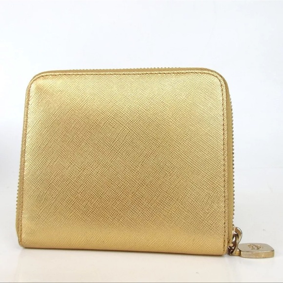 Authentic MCM Leather Zip Wallet Gold