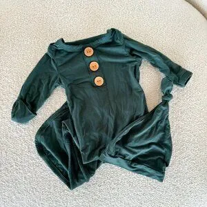 Forest Green Baby Nightgown with Matching Hat