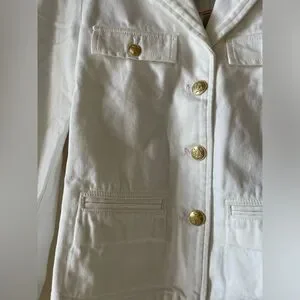 New with tags. The comfort of denim and the polish of a blazer. This wear-with-everything layer features a straight, easy fit, button closure down the front and patch-pocket details. 100% cotton