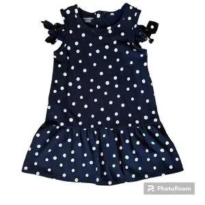 NWOT Toughskins navy blue and white polka dot drop waist dress. Adorable bow details on a cold shoulder design. No signs of wear or tear.