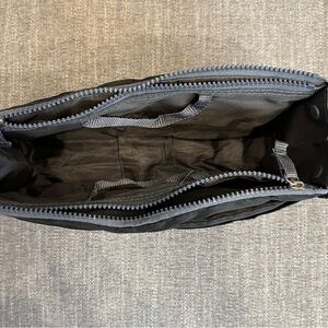 Has many pockets on each side. As well as zippered pockets on each side is the full lengths of each side.