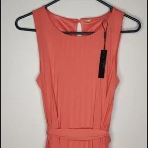 NWT T Tahari Dress in coral color. Comes with matching belt. Size S