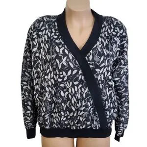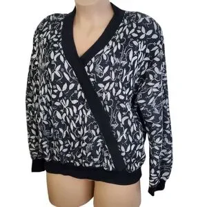 Eccotoo Sweater Womens Plus 3X Black & White Floral Faux Wrap Vintage ~Pre-Owned