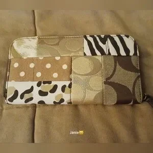 Features an assortment of animal prints as well as Coach signature panels.