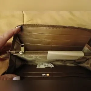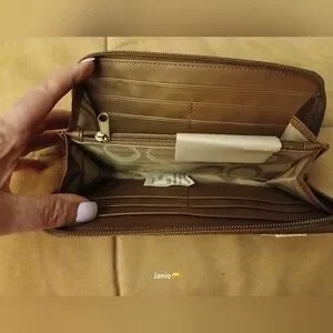 NWT Features Coach logo, zip closure, inside zippered change compartment. beige leather interior, 12 card slots, as well as Coach signature lining on change compartment. A must have For Coach lovers.