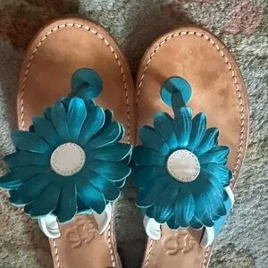 Lilly Pulitzer Sandals blue and white flower, leather sz 9