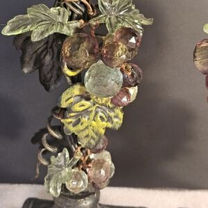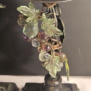 Add a touch of elegance to your home decor with these two vintage candlestick holder. The ornamental design features a grapevine pattern with leaves and crystals that add a unique touch to the piece. Measuring at 4 inches in length and 8 inches in height, this medium-sized candle holder is suitable for any occasion and can hold any candle of your choice.