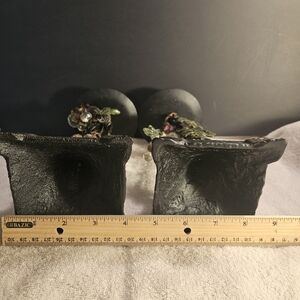 Crafted from cast iron and metal, this candle holder is perfect for indoor use and is original from the 1970s. The matte black finish gives it a seasonal and retro vibe that will complement any room in your home. This item comes in a set of two and is unboxed, making it a great addition to your collection of decorative collectibles.