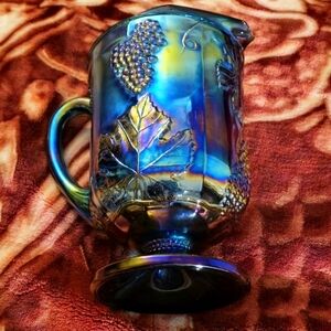 Indiana Glass "Harvest Grape" Iridescent Blue Carnival Glass Pitcher -Colors-WoW