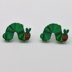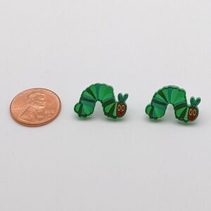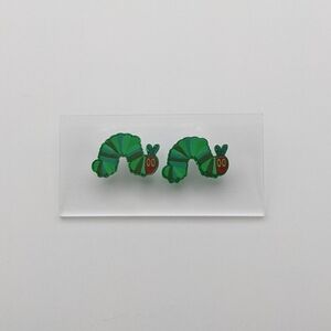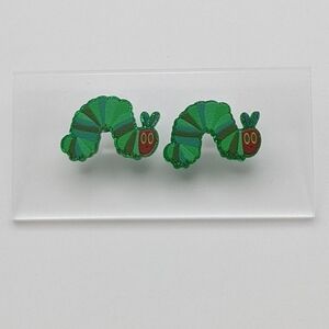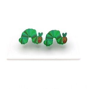 Caterpillar acrylic green glitter stud earrings