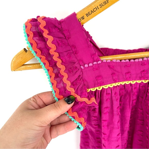 Brand new with tags! Smocking in back. Unlined, somewhat of a sheer top. Magenta with yellow, orange, and aqua accent colors. From a smoke free, pet free home. No trades, please!