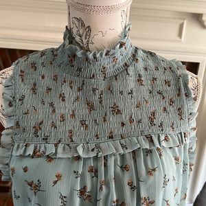 Set of 2 - Smocked Top Mock Neck Ruffle Floral Boho Dress Sz L