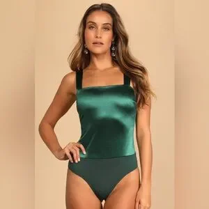 NWT | Lulus | Emerald Green Satin Sleeveless Bodysuit | Sz XS