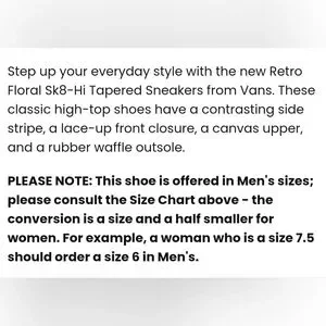 Vans Retro Floral Sk8-Hi Tapered Sneakers Women's 8 Men's 6.5