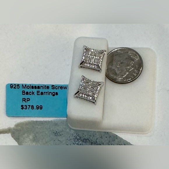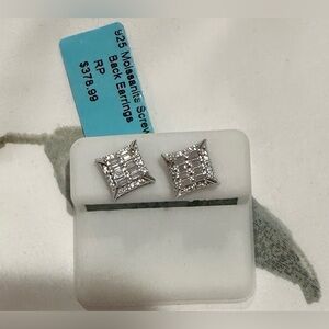 Moissanite screw Back Earrings 925 square NWT 1.13 CTW VVSD COLOR