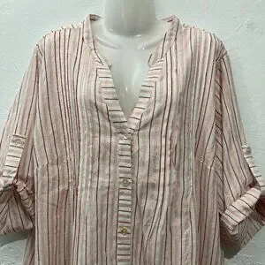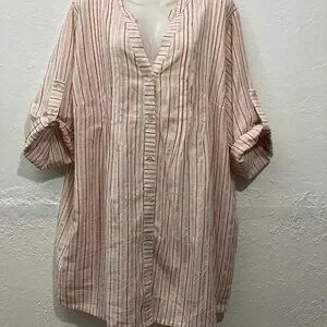 NWT Club Z Collection Long Roll Tab Sleeve Button Up Shirt Cover Up Tunic 2X