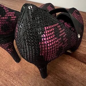 Iron Fist Digi Skull Black/Pink Sequin Platform Pumps Size 7