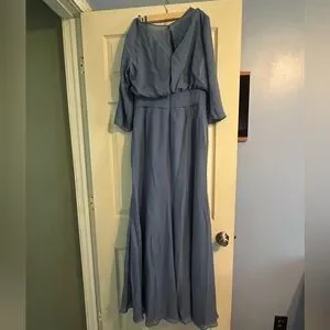 COLOR IS SLATE BLUE. Please note that some photos show the dress in black for reference but the color is slate blue.