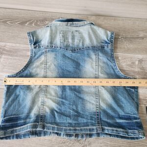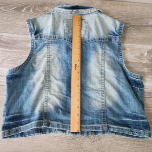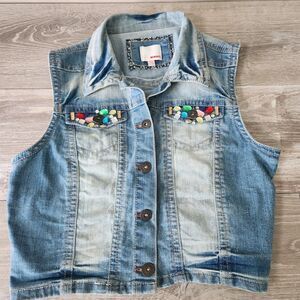 Bongo Vest Womens XL Cotton Embellished Stretch Blue Denim Button Up Jean Jacket