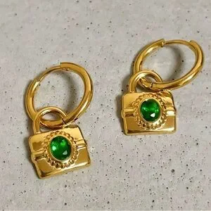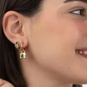 18K Gold Plated Padlock Earrings*Mini Hoops*Lock Pendant Earrings*Vintage*ML