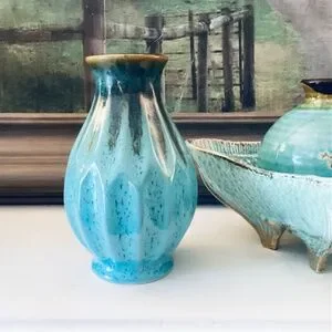 Turquoise Ceramics Set Of 3 Mixed Pieces Vases Square Bowl Home Accents Decor