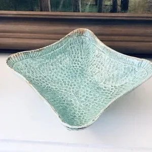 3) square centerpiece bowl with dimpled texture and gold detail - 11.5” corner to corner, 4.5” tall