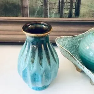 Set of 3 Turquoise ceramic pieces for home decor accents. Curated collection to add a pop of color to your home.