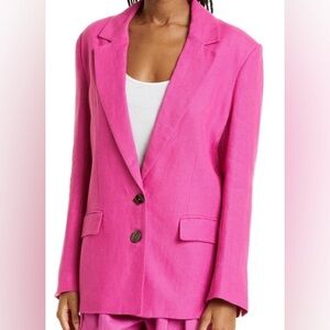 You can't not have an excellent day whenever you're wearing this vivid peony-pink blazer finished with two striped buttons in different shapes.