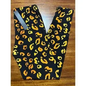 New Womens Cheetah Black Gold Peach Stretch Butter Soft Legging One Size 0-10
