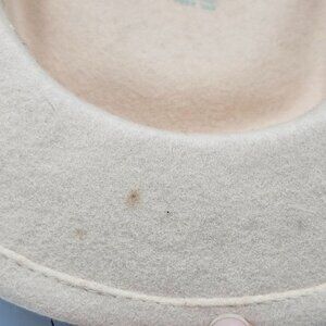 This elegant vintage women's hat features a wool felt base with a stylish navy ribbon and lace accent. A timeless accessory for refined taste. Hat is lovely but could use some freshening up and decorating so calling this a 'project hat'. Turn it into whatever your heart desires.