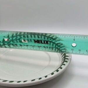 Portmeirion saucer for drum mug. Matches with all of the different patterns in The Botanic Garden collection Excellent used condition with no chips, cracks, scratches, or crazing. One small pinpoint size mark on rim (possible utensil mark, see photo). Features green vine pattern on white background. I have a set of drum mugs listed separately along with many other Portmeirion pieces. Please see my closet and bundle to save!