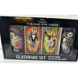The Nightmare Before Christmas Glassware Set of 4 Glasses Disney Tim Burton 10oz