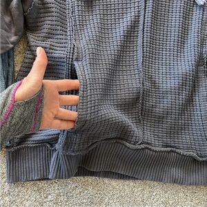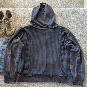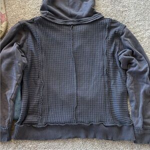 Vintage Havana Relaxed Fit Hoodie. Super cute and easy to throw on & go! Distressed blue color. Mixed textures. Hooded. Front pouch pocket. Long sleeves. Laying flat approx 23” shoulder to hem, approx 22” pit to pit. 100% cotton. Size S. Excellent condition.