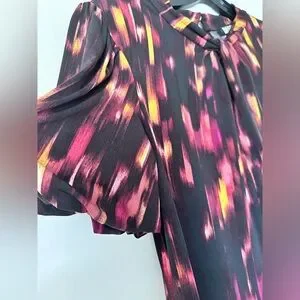 Gorgeous blouse in vibrant fall colors. Perfect for layering under a blazer or with jeans and boots. Poofy sleeves. PtP 20” Length 24”