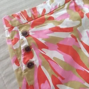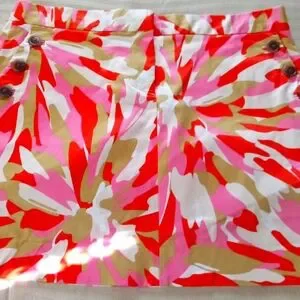 Pretty colorful Mini Skirt side pockets w/button closure and two back pockets. See pics for details on length.