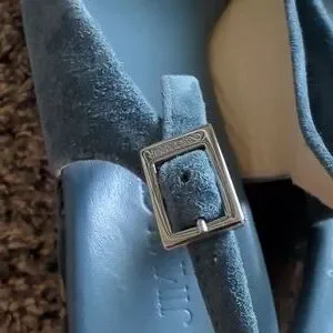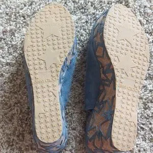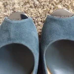 Beautiful fun and unique pair of like new, never worn Jimmy Choo. The shoe is blue suede with a unique star design on the wedge itself. the size of the shoes is EU 37 which is about 6.5 in US size.