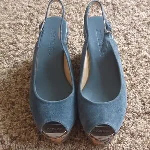 Jimmy Choo Praise Open Toe Slingback Suede Wedge size 37