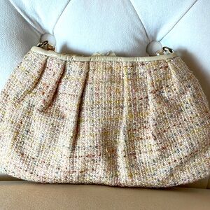 Violette Nozieres VINTAGE Tweed leather small pieces decorative flower pearls